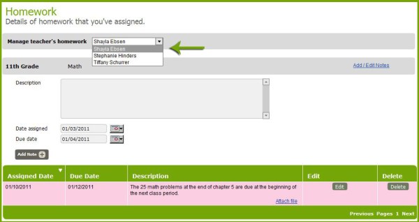 At times, teachers must rely on each other to ensure their lesson plans remain on schedule. The final homework module enhancement recognizes this interconnectivity by allowing teachers to create assignments and upload files for their colleagues.