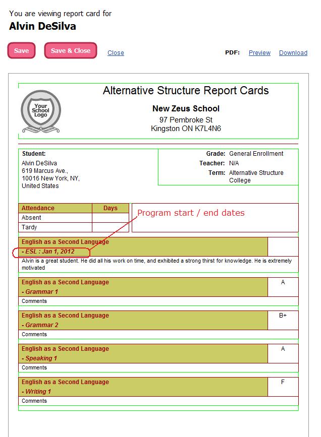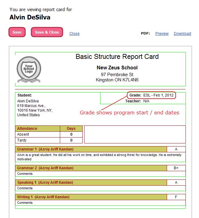 - Since there are no academic terms, the Report Cards function like a Transcript, since it will display all subjects that student has ever taken.