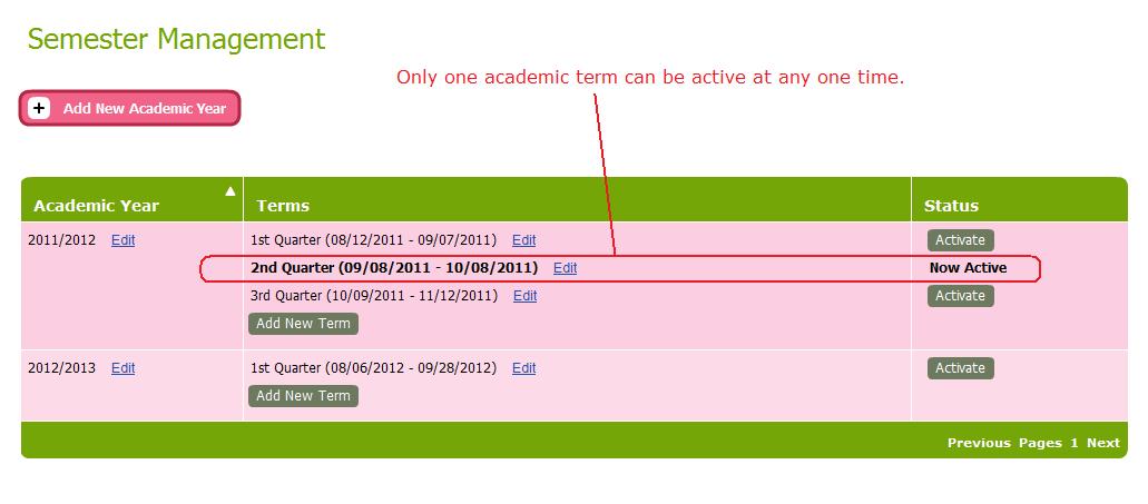 In QuickSchools, you can define multiple academic terms. However, only one academic term can be active at any one time. All other inactive academic terms are effectively archived (read-only). You can of course activate any academic term at any time, but you’d have to coordinate it with your staff. This is because when users make changes to subjects and grades, it only effects the current activated academic term. You can check out our blog post about “Creating New Academic Terms (and New Gradebooks)”