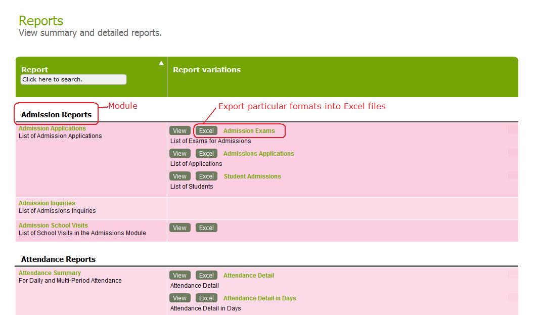 One method of backing up your data is to simply run reports for the individual modules. Data from each module can be exported into an Excel file, and stored offline. The data backed up in this method is readable, but a little tedious to perform, depending on the number of modules you have activated in your account.