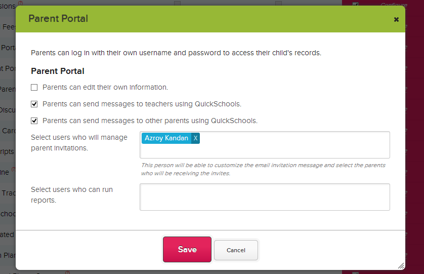 […] having to keep track of a bunch of separate outside email threads. All this is done through the Parent Directory module. Parents can also view each other’s contact information from the same […]
