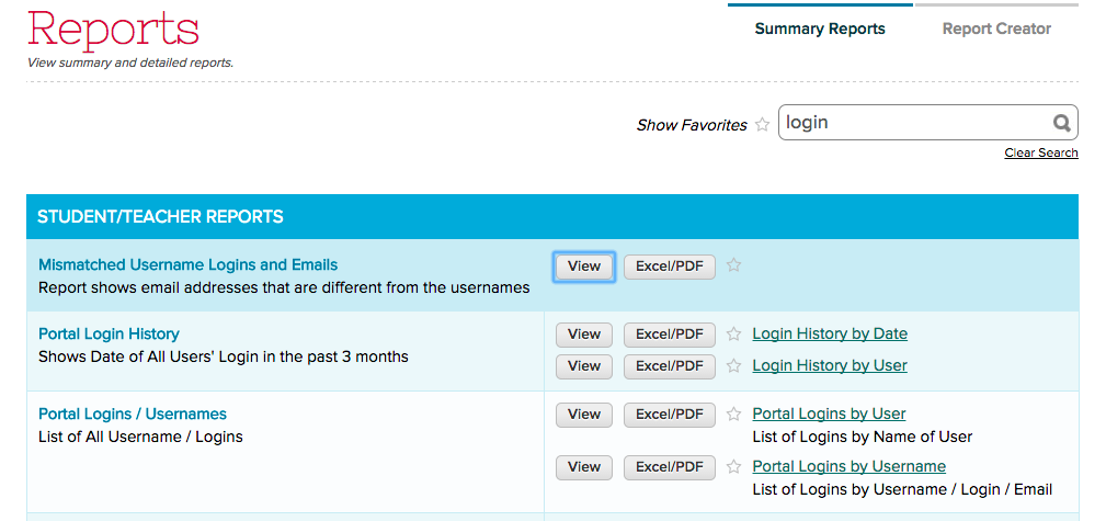 This report lists out all users within your account. You can search by portal type (Teacher vs. Parent vs. Student), as well as whether the user has logged in before (i.e. Login Status). It also lists out the last time the user logged in, so you know if the user has been actively logging in.