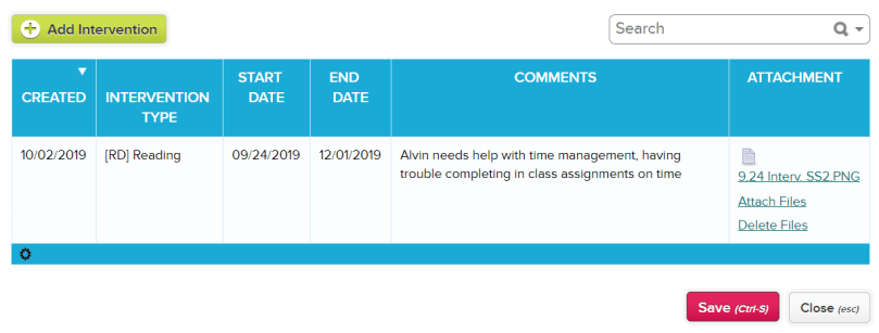 We have just released the new Interventions app in the QuickSchools app store. This app allows you to track notes and files related to academic interventions for students: