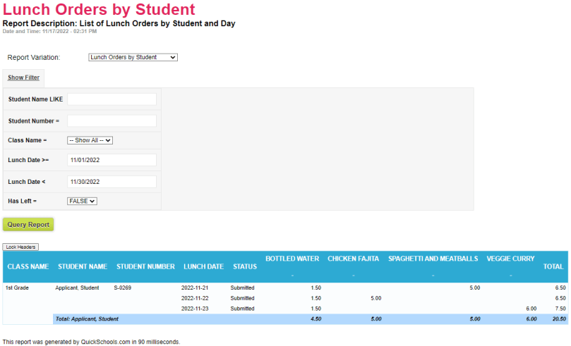 The lunch orders can then be viewed through either the Lunch Ordering > Order Fulfillment tab, or our Lunch Ordering Reports.
