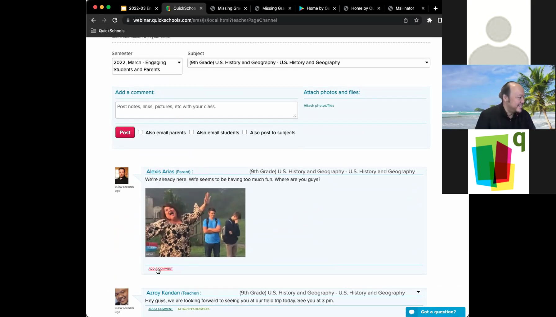 QuickSchools’ Product Roadmap is scheduled for Thursday, May 19 at 11 AM (PDT) / 2 PM (EDT). Register by logging on to your QuickSchools account. The registration link is available on the Teachers’ Lounge page.