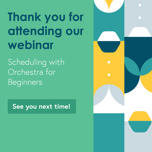 We’d like to thank everyone who attended our webinar on Scheduling with Orchestra for Beginners. We hope that you learned something new, and found it helpful.