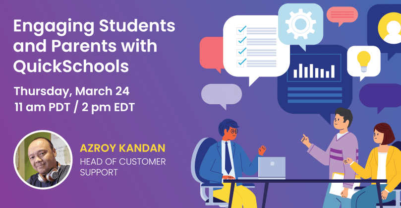Please note that this webinar is geared towards teachers. In addition, all users levels (from beginners to advanced) are welcome. Book a slot for yourself by logging on to your QuickSchools account and signing up from the Teachers’ Lounge page.