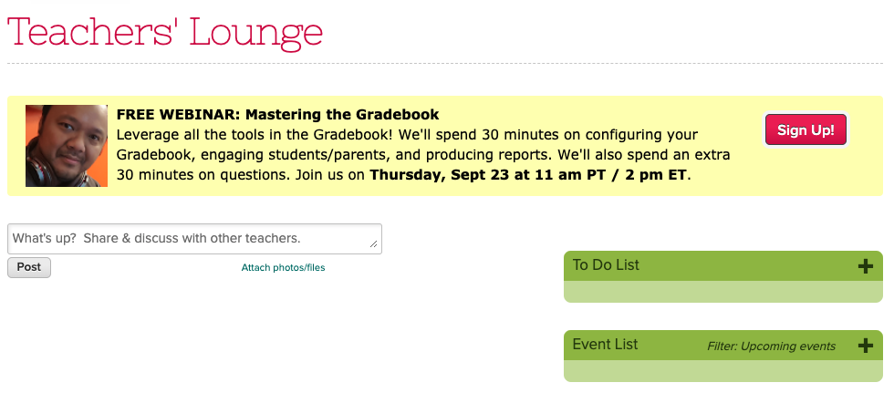 This webinar is scheduled for Thursday, October 21st at 11 AM (PDT) / 2 PM (EDT). Log on to your QuickSchools account to register. You’ll see the announcement and sign-up link on the Teachers’ Lounge page.